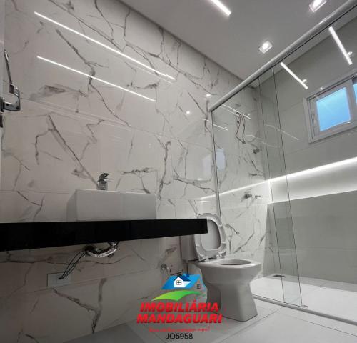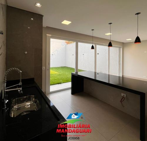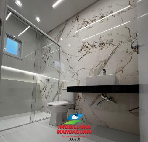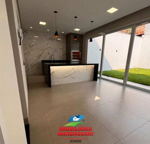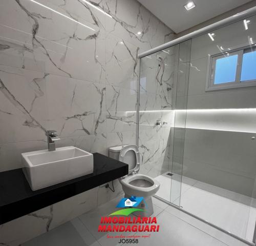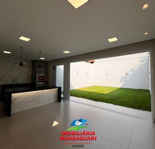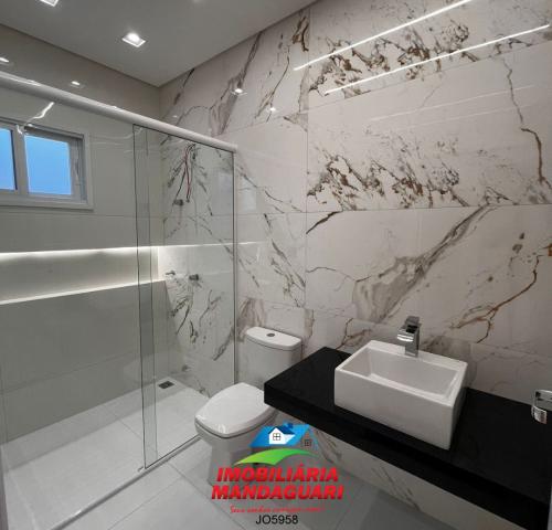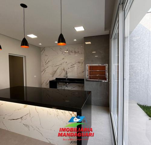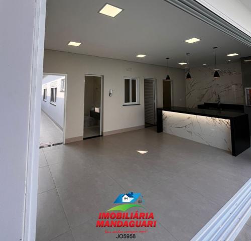 Casa residencial de alvenaria composta por 02 (dois) quartos, uma suíte máster, sala de visitas, banheiro social, cozinha, sala de jantar, despensa, lavabo, área de serviço, área gourmet, 02 (duas) vagas na garagens.